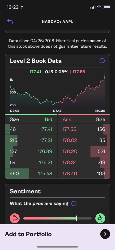 Detailed analysis is available for every stock and ETF, including Level 2 Book Data.