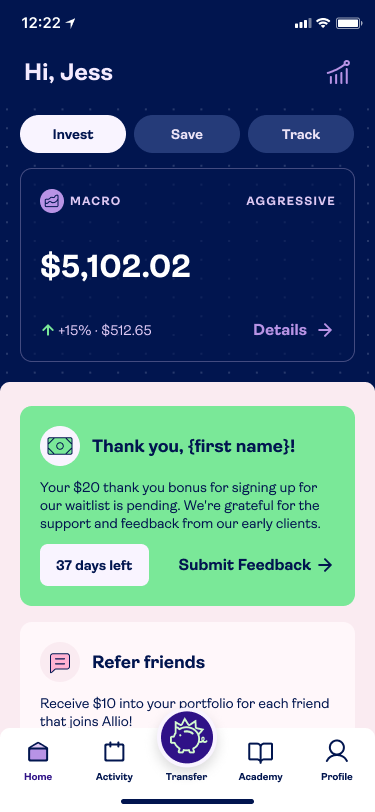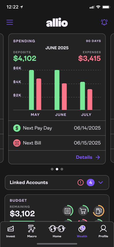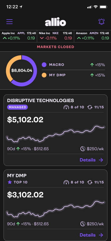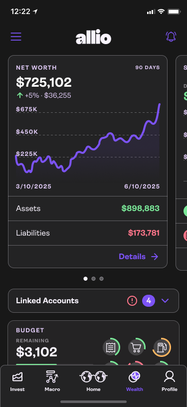 Allio Capital offers a unique value proposition: AI-powered macro investing, combining economic insight with portfolio strategy, via features such as the managed macro portfolio, dynamic macro portfolio, net-worth tracker and macro dashboard. We want to elevate the user experience across mobile and web to better serve both investor-savvy users and those newer to macro strategies; making high complexity feel intuitive and empowering.