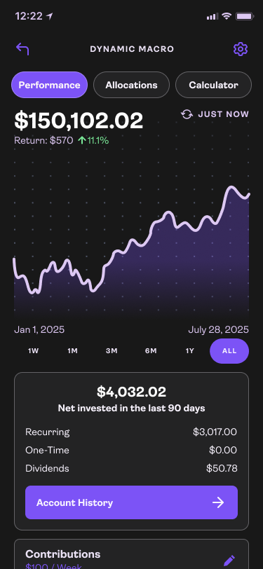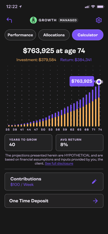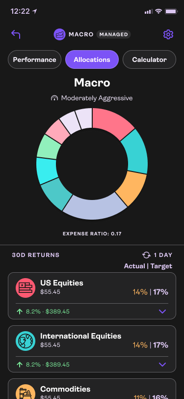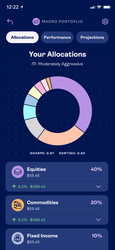 Monitoring your investments is crucial for a long term investor. They are not looking to switch up assets day to day but monthly changes to allocations is to be expected. Projecting out possible growth keeps the product sticky and increasing deposits. Market movements are also easier to grasp when you have a quick view in the Macro Dashboard.