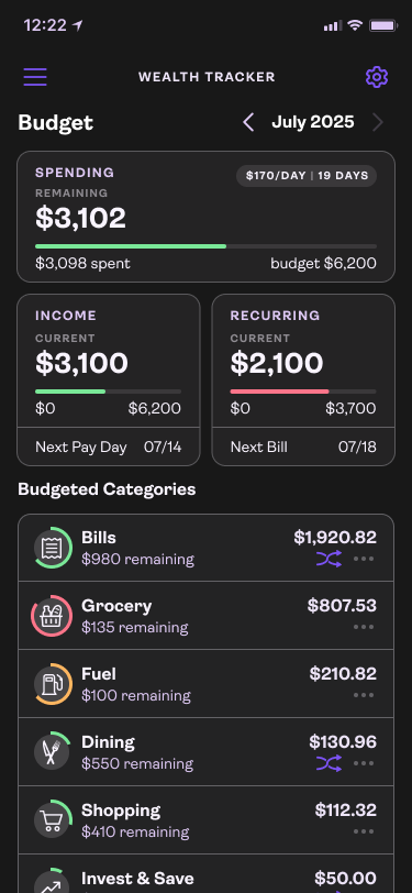 Budgeting is simple to setup and customize to keep more money invested for longer.