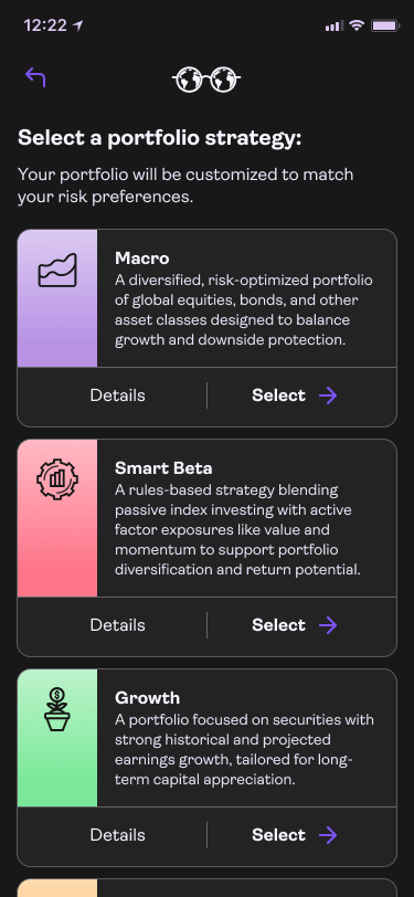 The initial product we released was for a younger audience, specifically the Gen-Z market. The product was created similar to other savings applications, but with better strategies. The objective of the original product was to help clients achieve financial goals while also investing in strategies that they believe in. All the strategies were managed and powered by our internal AI investment engine.