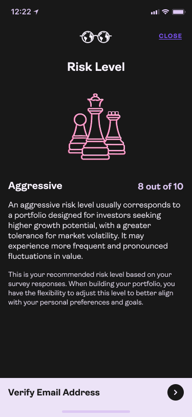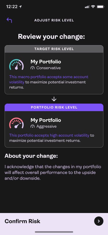 Utilizing all the client data we calculate their risk level and give them options to adjust.
