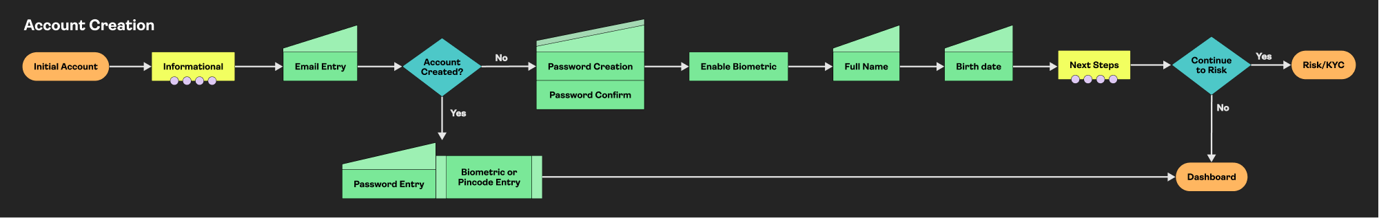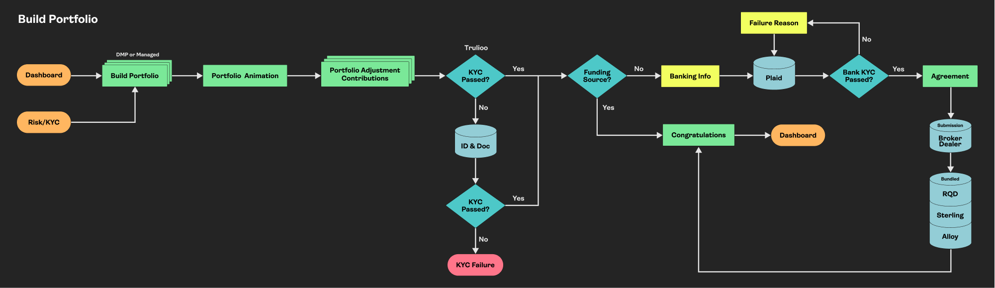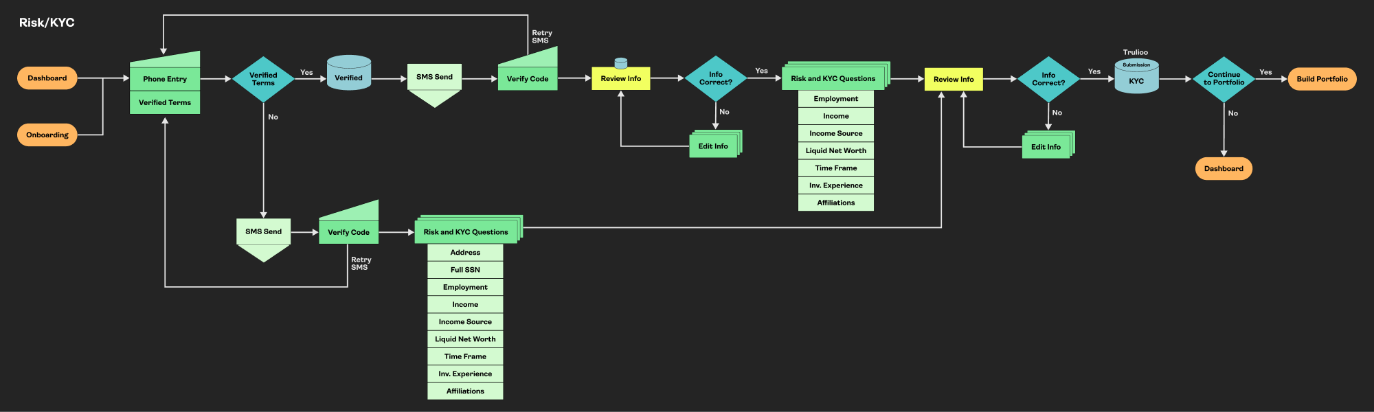 Fintech has some of the highest drop-offs in any products in the market. I knew the typical drop points from past experience (SSN, Banking, etc.), so I built trust early on. Allowing the clients to build and interact with the full application before asking for this sensitive data built trust. We created these intentional drops for clients to learn and explore made the onboarding feel more gradual as a whole.