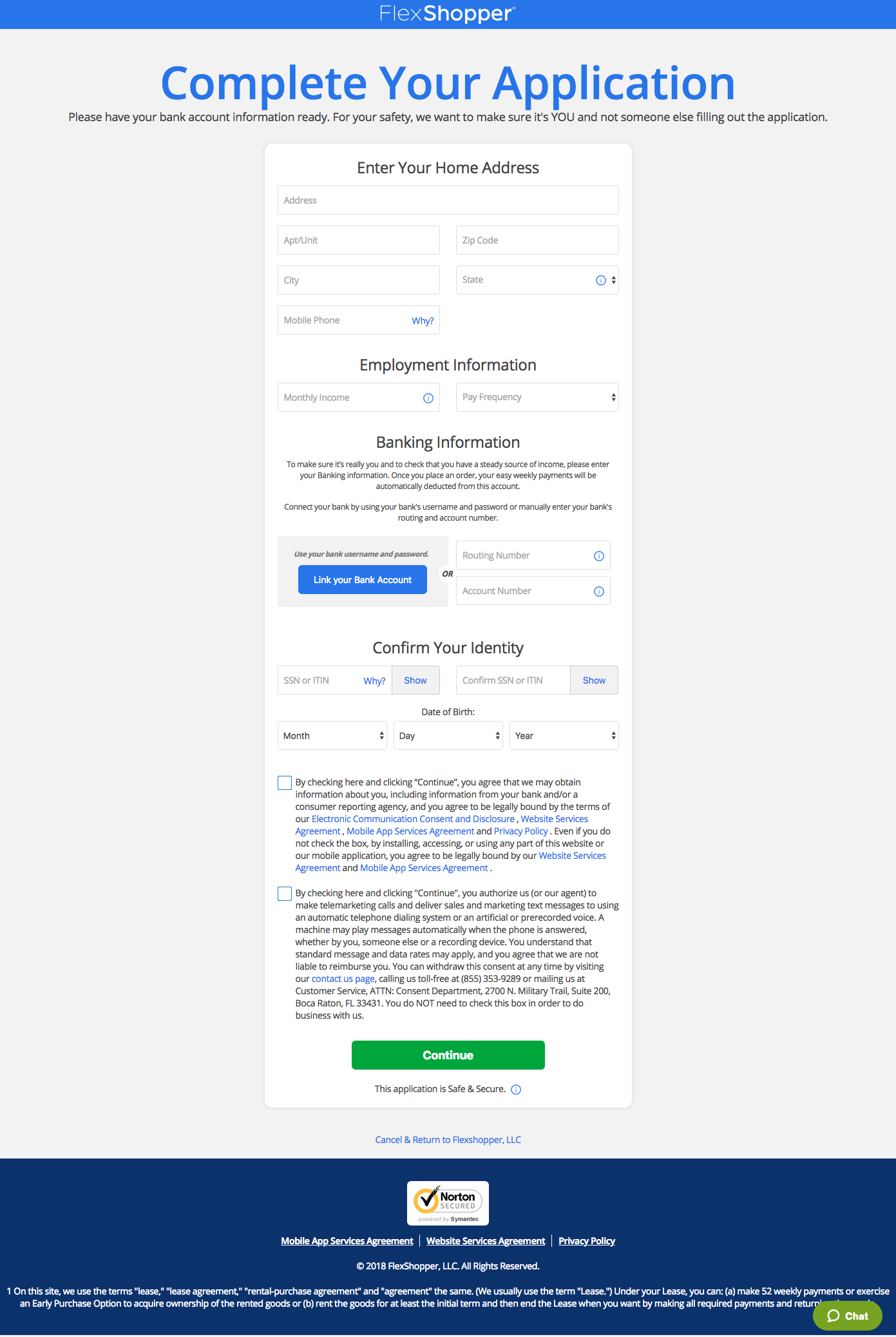 FlexShopper’s application process is a core entry point for new customers seeking lease-to-own purchasing options for electronics, appliances, furniture, and other high-value items. The current flow offers essential functionality but presents opportunities to reduce friction, improve clarity around requirements, and increase completed applications. This project aims to research, redesign, and optimize the end-to-end application experience to be intuitive, transparent, and conversion-driven while maintaining compliance with financial and leasing regulations.