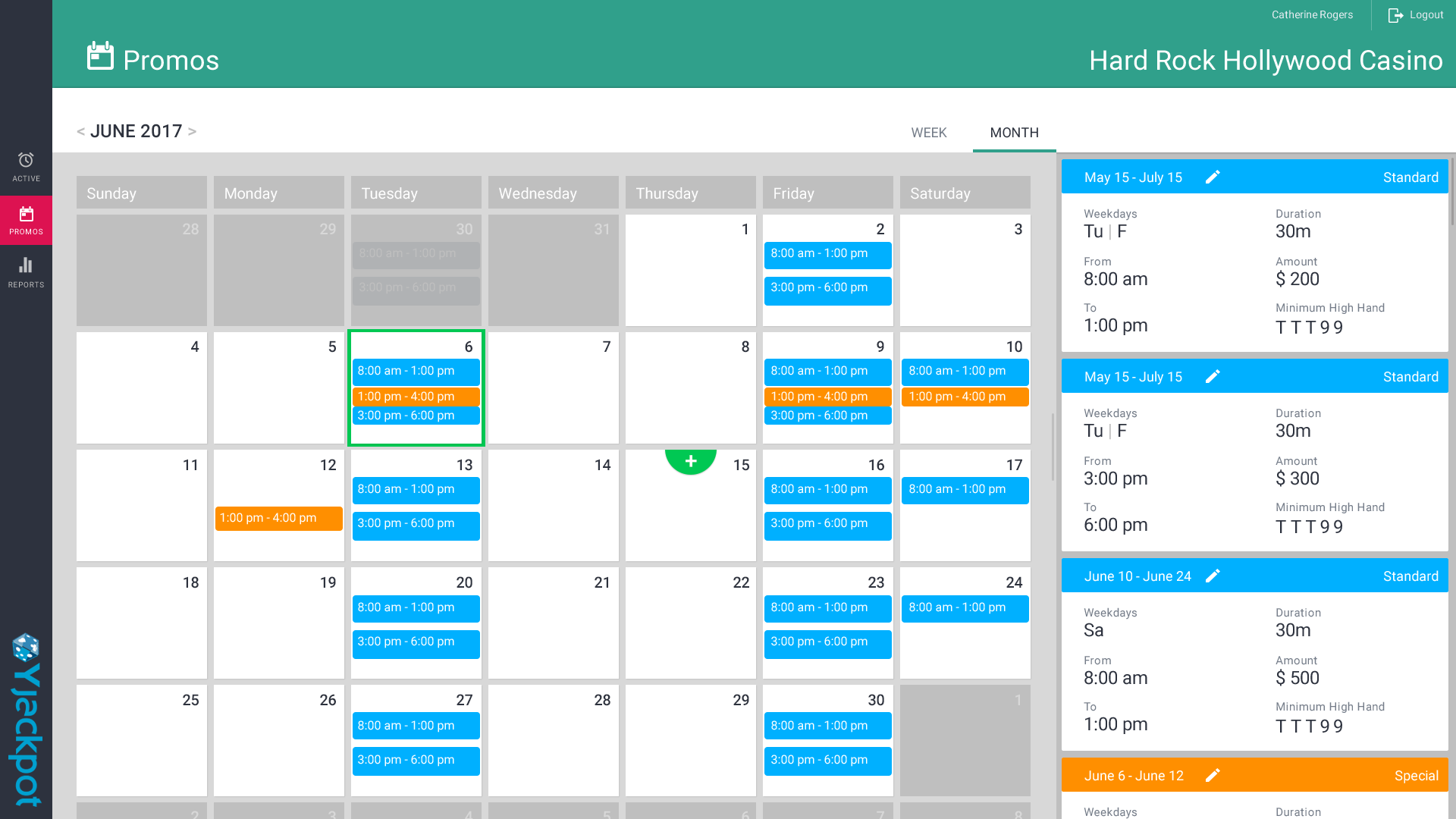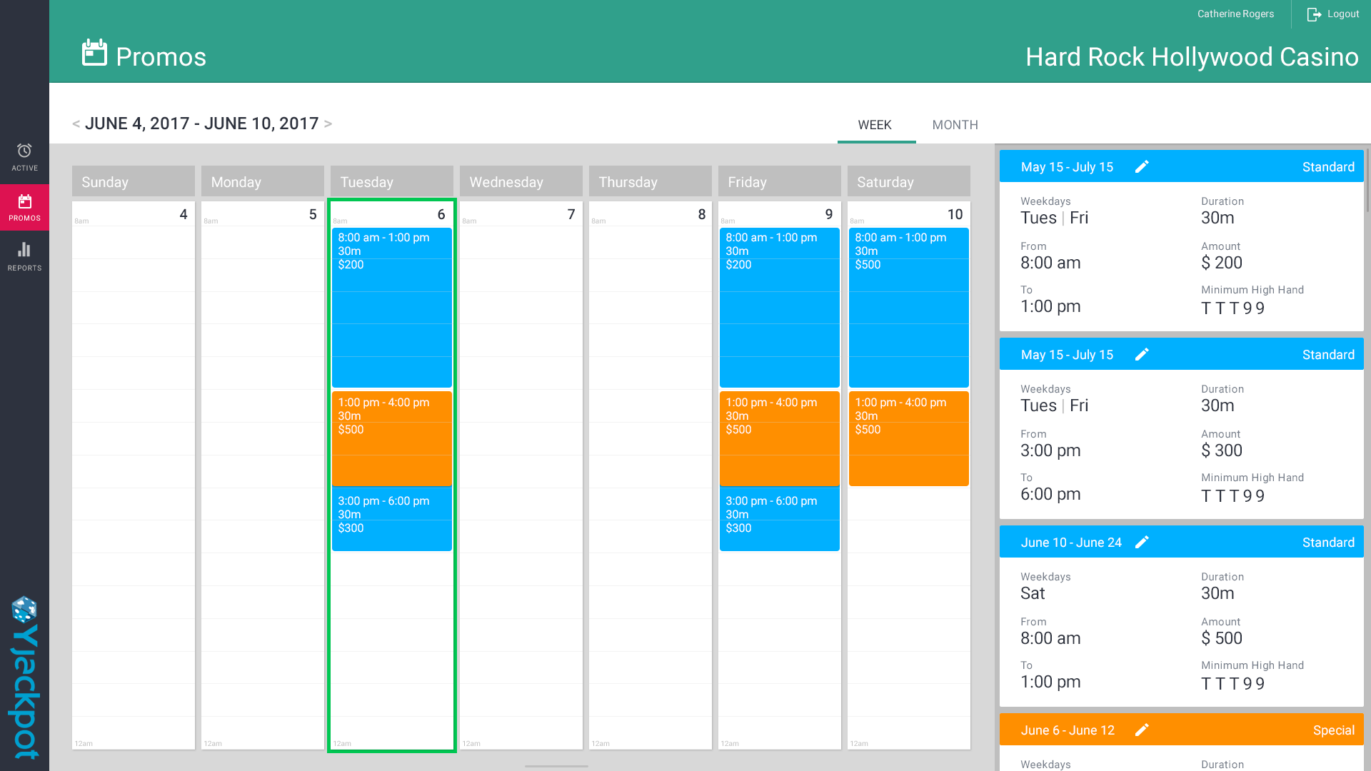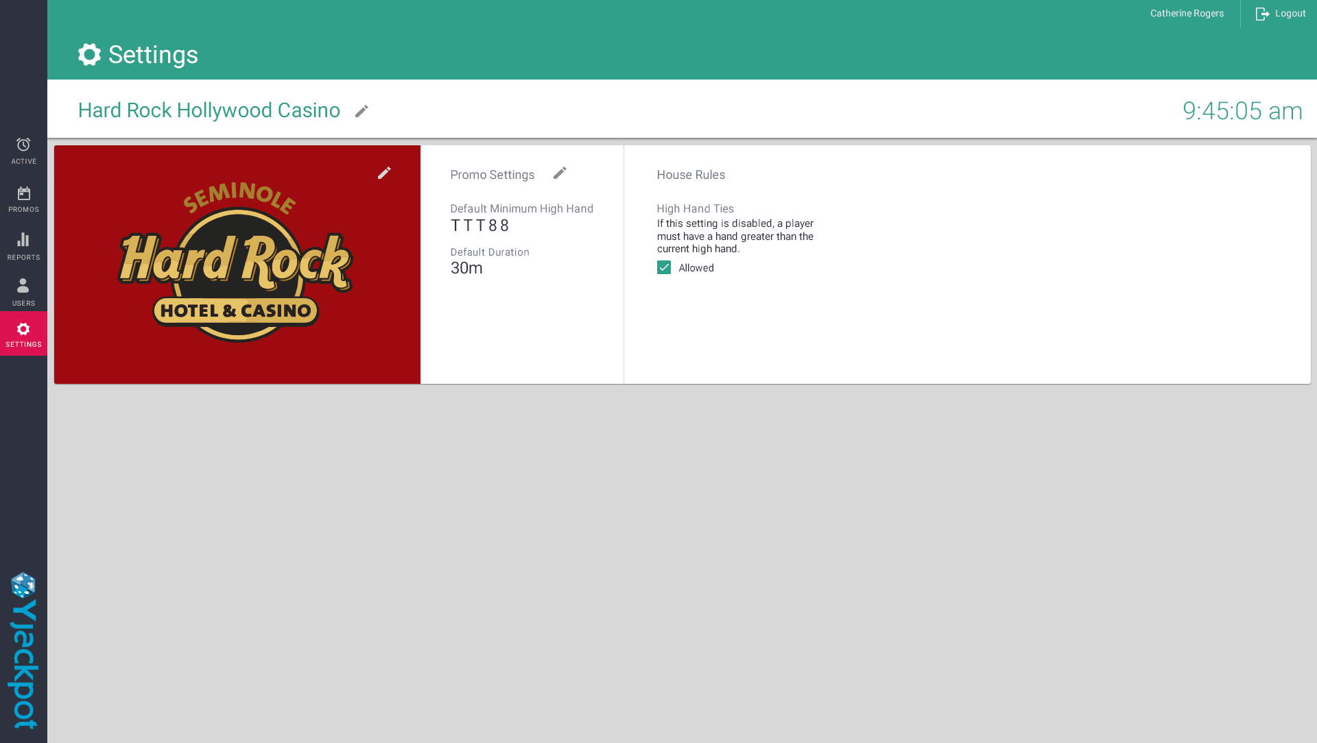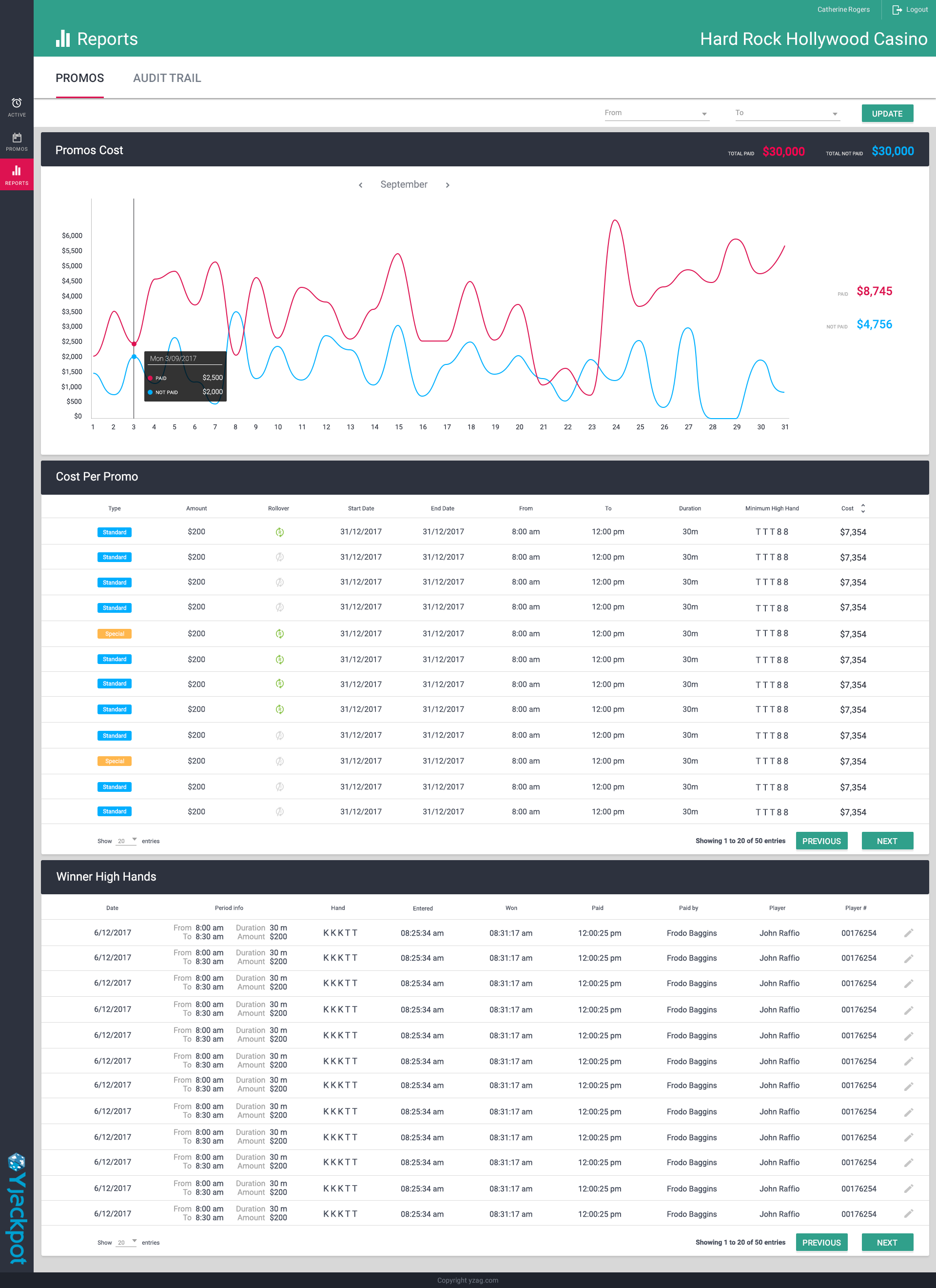 Clients can analyze how effective and profitable their promos are as well as audit all payouts. These features make the analysis that much easier to ensure the promos are timed right and low and high are set appropriately. In the settings they can customize their color palette and logo, as well as manage all users. Specific roles can be assigned to each user, keeping their responsibilities locked down for compliance/tracking.