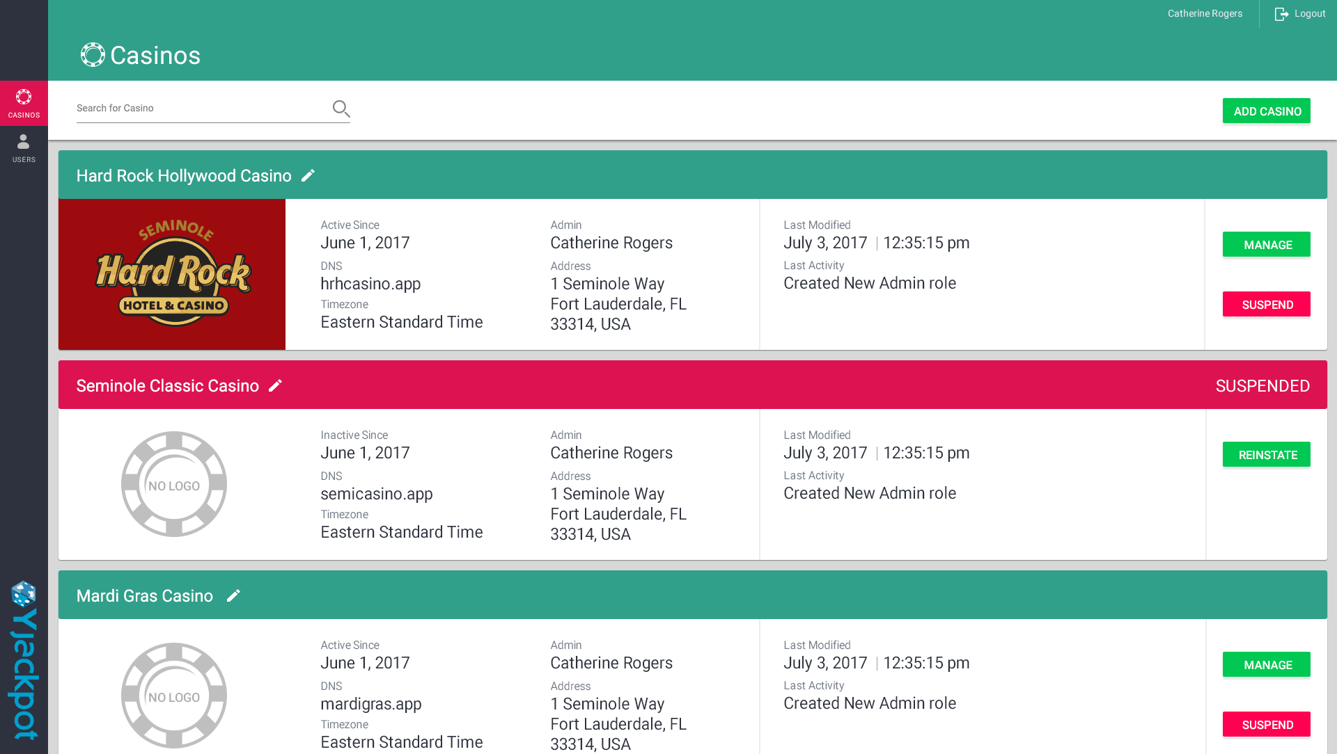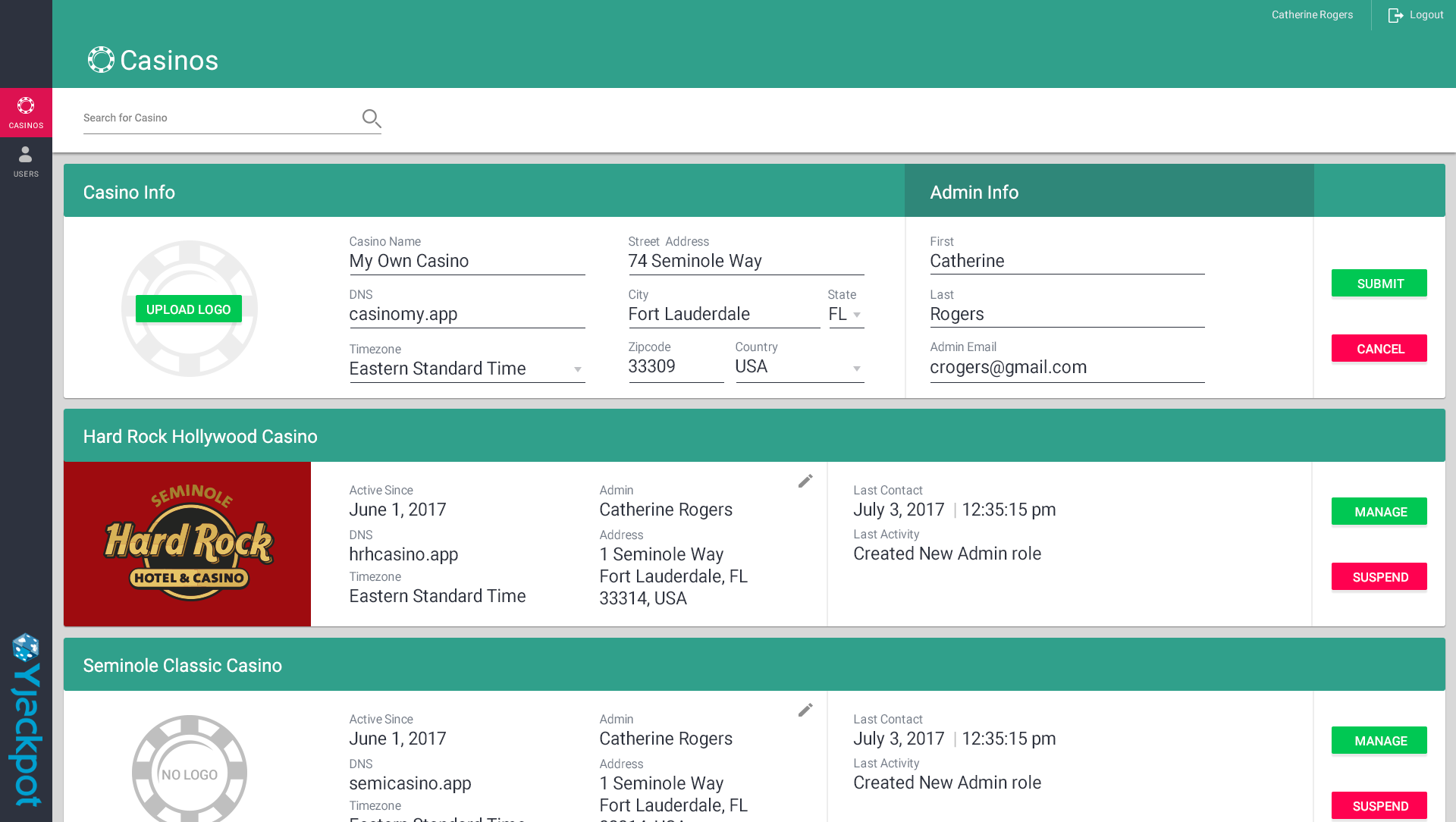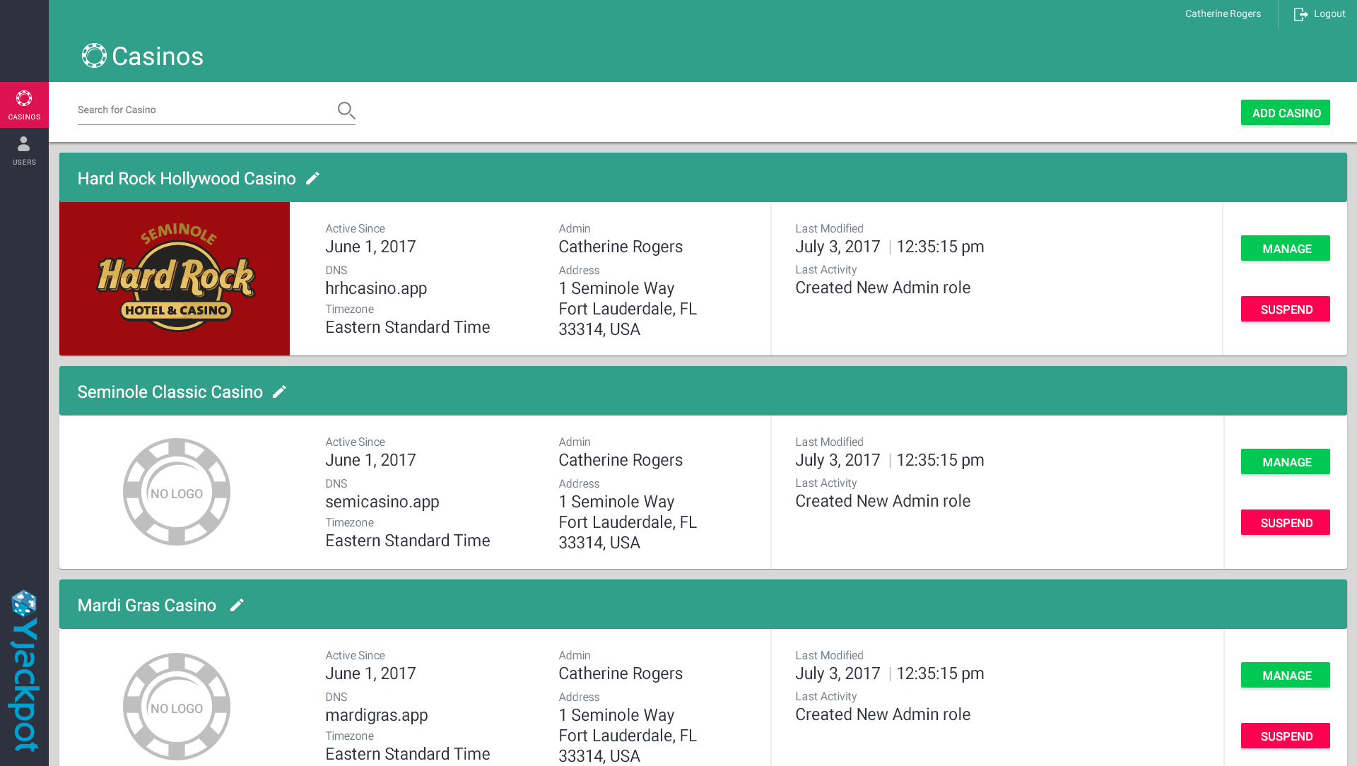 To make onboarding new casinos or poker rooms easier, we built a higher level system to manage the accounts. Everything from the branding, color palette, and users can be added to get the poker room or casino started.