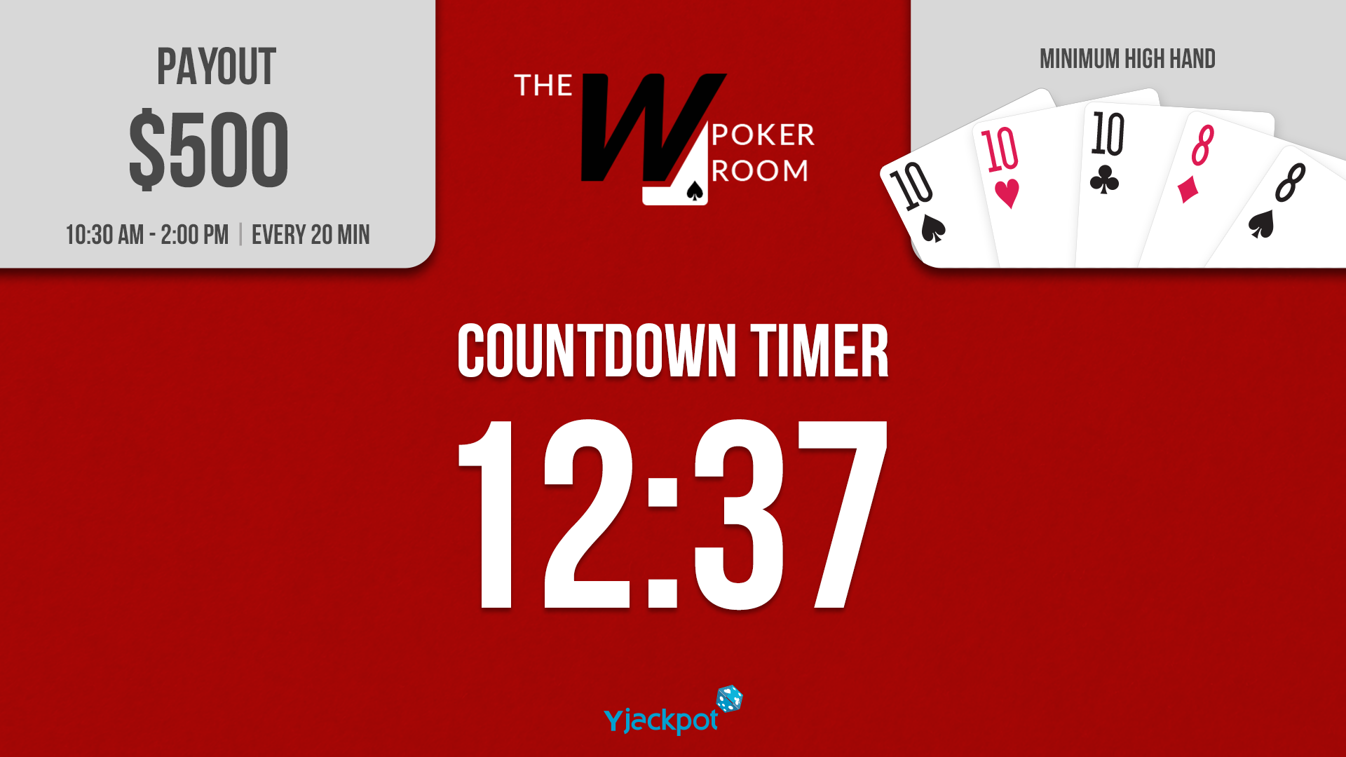 Working with players who have traveled the world playing poker tournaments, we designed a display based on their feedback. The timer is the main focus until a high hand is called and then that becomes the focal point. When a no promo is active, the display advertises the next one or the poker room itself.